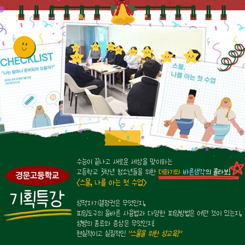 청소년들이 직접 관계에 관하여 생각🤔하고, 실습🤓할 수 있는